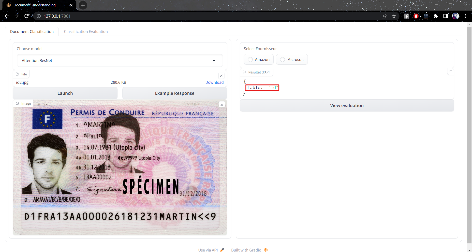 During the implementation of our final year project, we focused on automating document classification to meet the needs of the company EdenAI. Our main objective was to create an API capable of taking a document as input and returning the corresponding type among the following categories : handwritten, id, invoice, receipt, resume, or table. To achieve this goal, we explored different solutions and approaches, relying on the latest technological advancements in the field, such as automatic document understanding.
