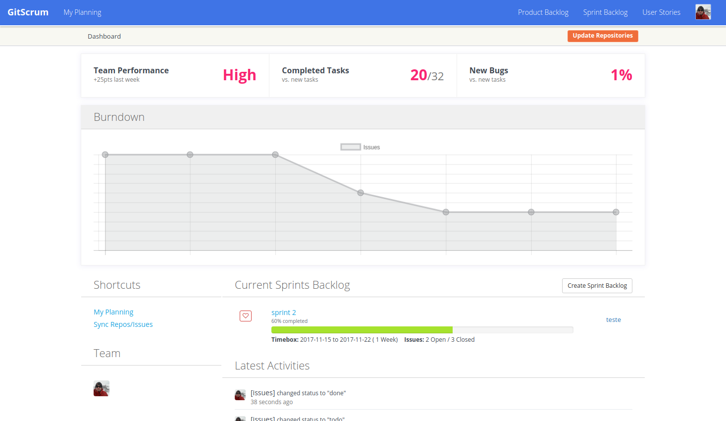GitScrum is a Project Management Tool, developed to help entrepreneurs, freelancers, managers, and teams Skyrocket their Productivity with the Agile methodology and Gamification.