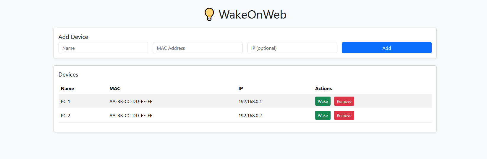 - Web interface to send Wake-on-LAN packets