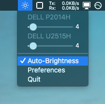 Allows you to control monitor brigthness via menu in status bar.