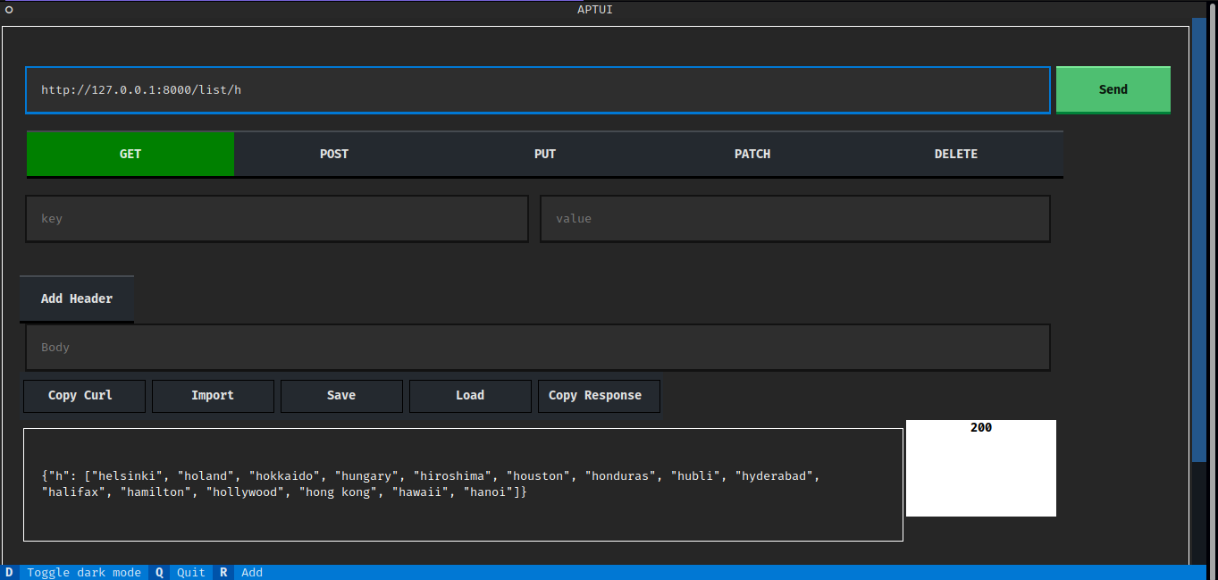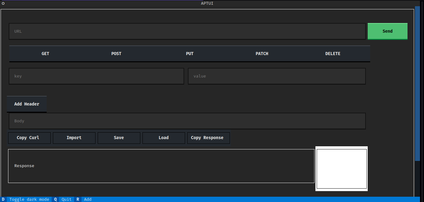 An terminal interface for testing and working with APIs and web requests. It is(will be) like Postman or Insomnia applications but in the terminal. Though it won't be a fully feldged application like those GUIs but it would serve the basic functionalities for testing APIs.