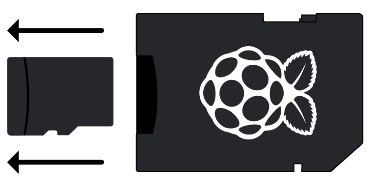- Insert the SD card we have set up with Raspberry Pi OS into the microSD card slot on the underside of our Raspberry Pi. Many microSD cards come inside a larger adapter — we can slide the smaller card out using the lip at the bottom.