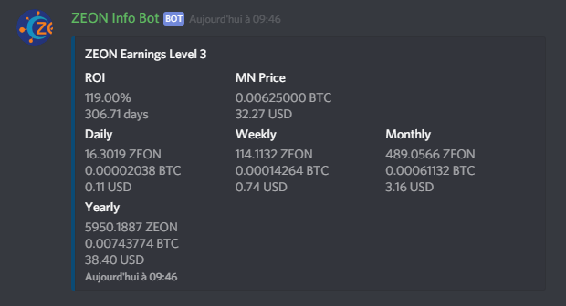 | Premine | 400 000 ZEON (0.3 % of total supply ) |