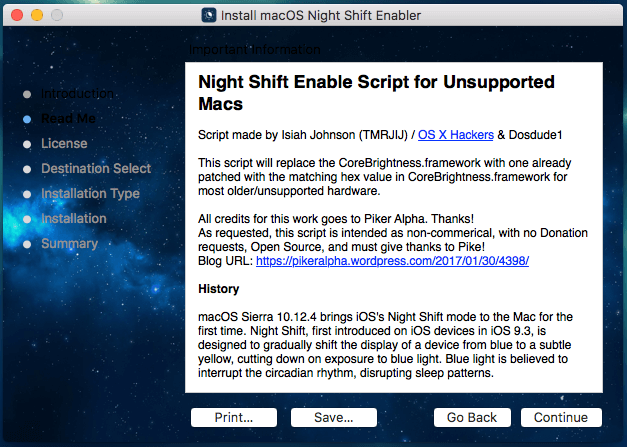 Night Shift Enable Script for Unsupported Macs Script made by Isiah Johnson (TMRJIJ) / OS X Hackers & Dosdude1
