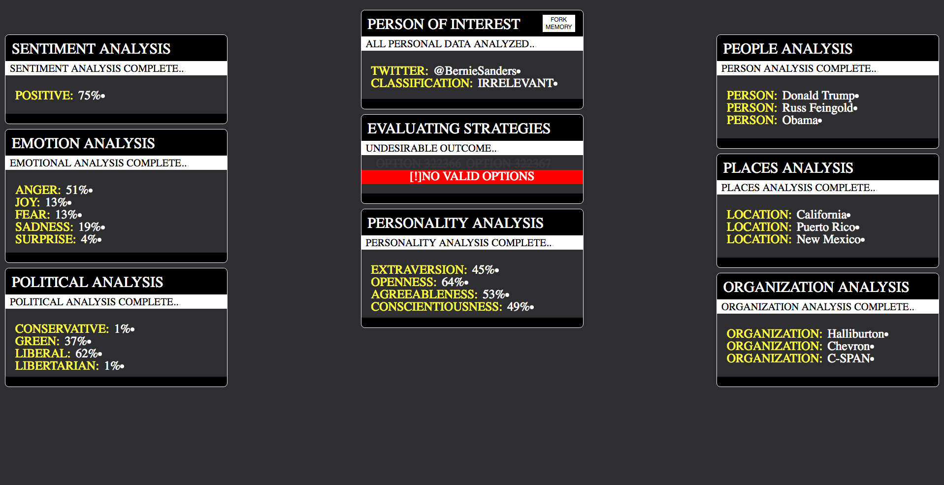 The Machine Project is a UI/UX experiment that recreates "The Machine" from the television drama "Person of Interest."