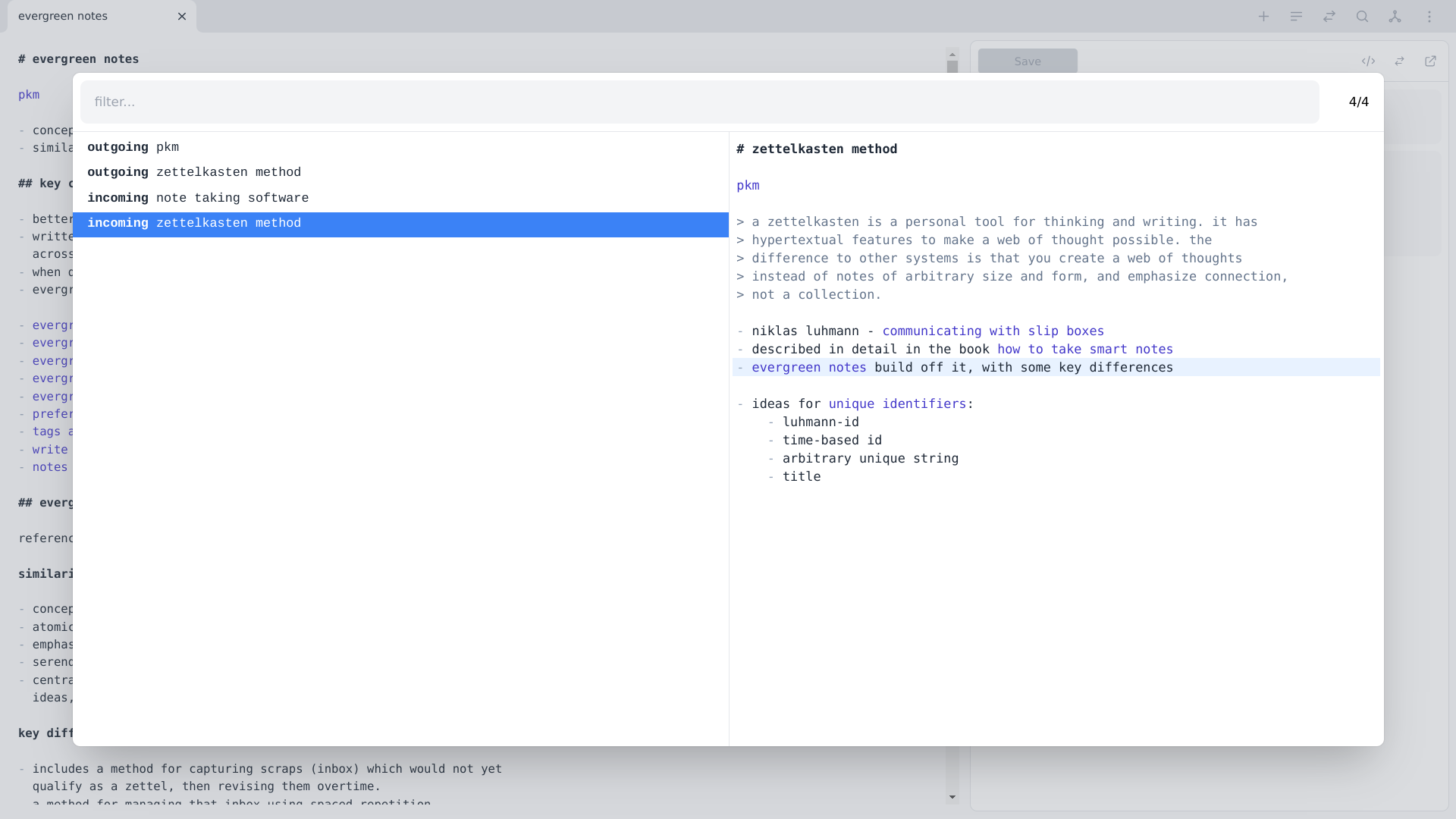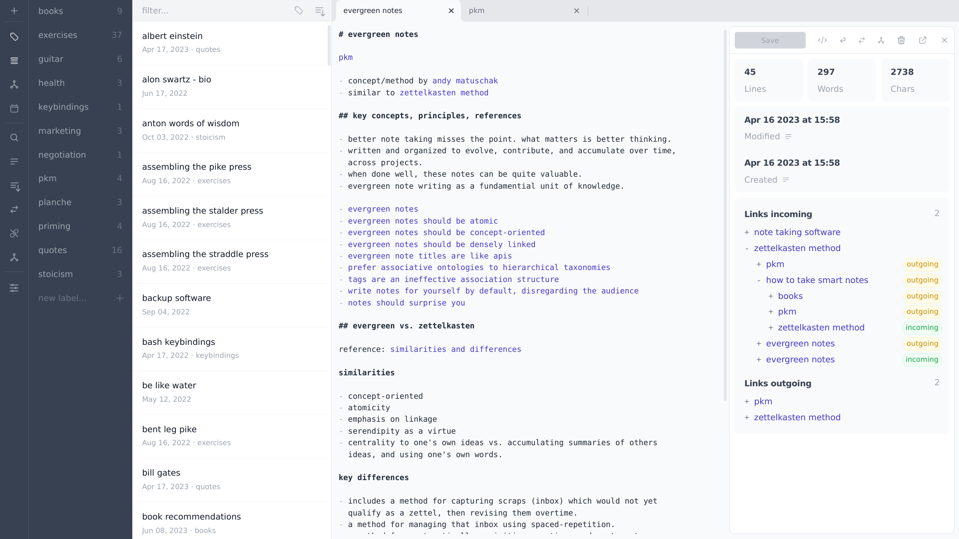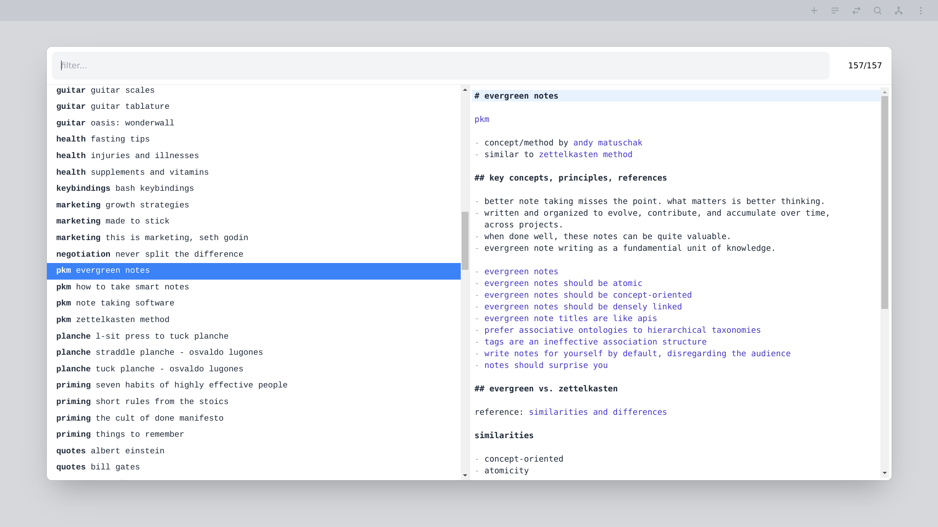 - Support the concepts of Evergreen notes and Zettelkasten.