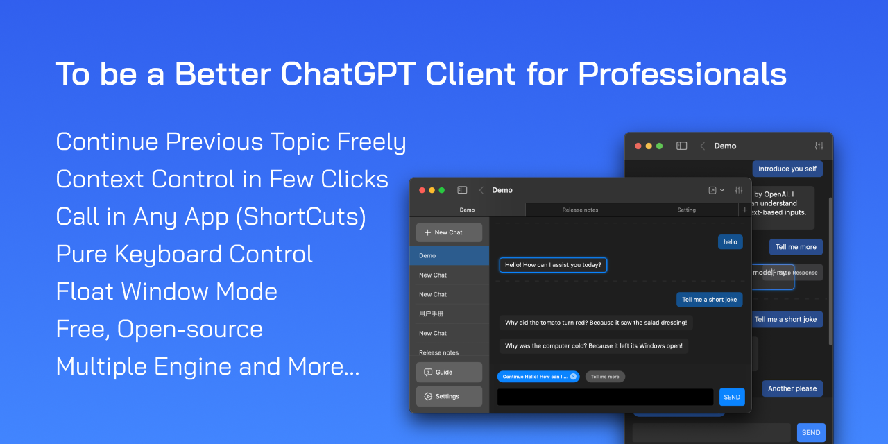 - I would like to add support for more engines, such as Claude and Azure OpenAI. If you can provide a testing API Key, that would be very helpful. Contact me via Twitter direct message @BB9z or Slack.