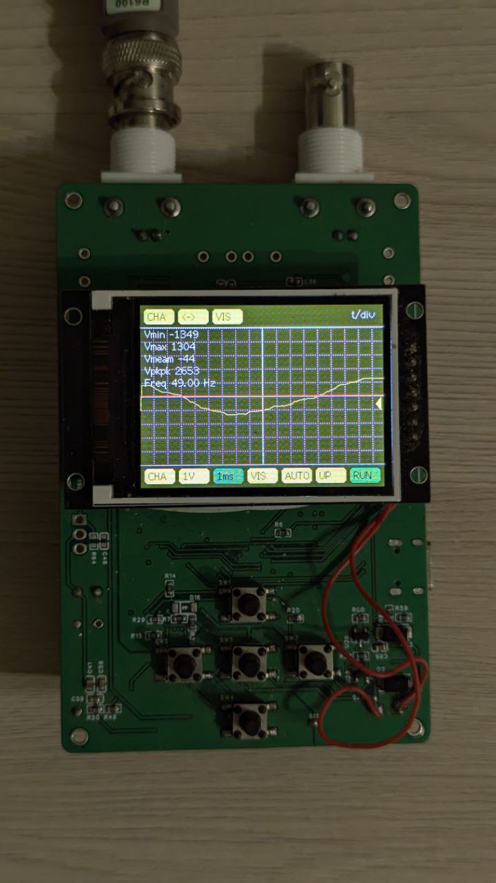 - Кнопки: масштаб по времени/напряжению, триггер, выбор канала