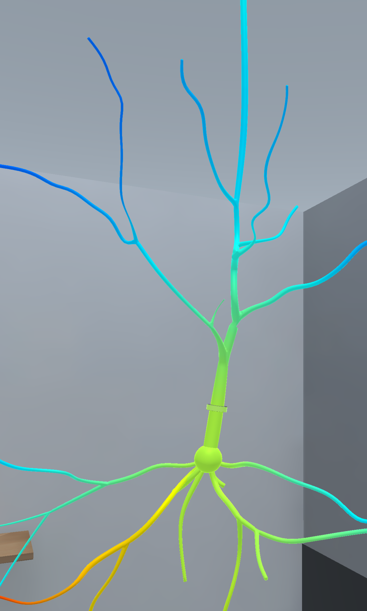 Assets/StreamingAssets/NeuronalDynamics/Geometries. Any cells found in this directory will be available at runtime. - Start the application by pressing play in the editor.