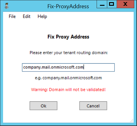 Usage: There are no parameters or switches, simply execute the script: .\Fix-ProxyAddress.ps1