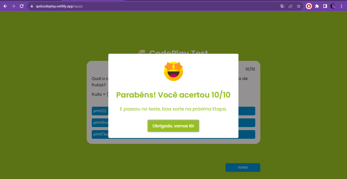 Figura 3 - Tela de sucesso no teste