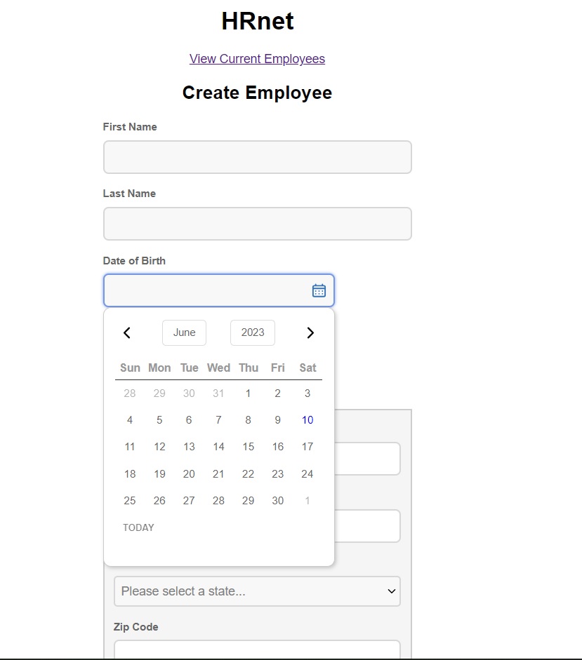 This project was carried out as part of an Openclassrooms training course. The task was to migrate an HR application used to register employees from JQuery to React. In this project, I created several React components to replace the JQuery library: