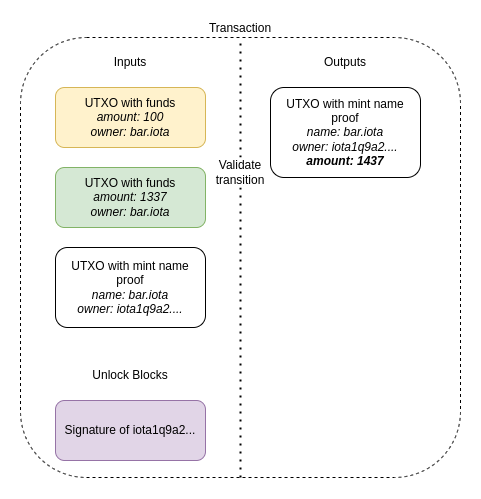 In UTXO based ledgers such as IOTA, there is no such shared global state available in the transaction context, and as a result, there are no smart contracts that could provide the name resolution. We need a different mechanism to implement a name service on IOTA.