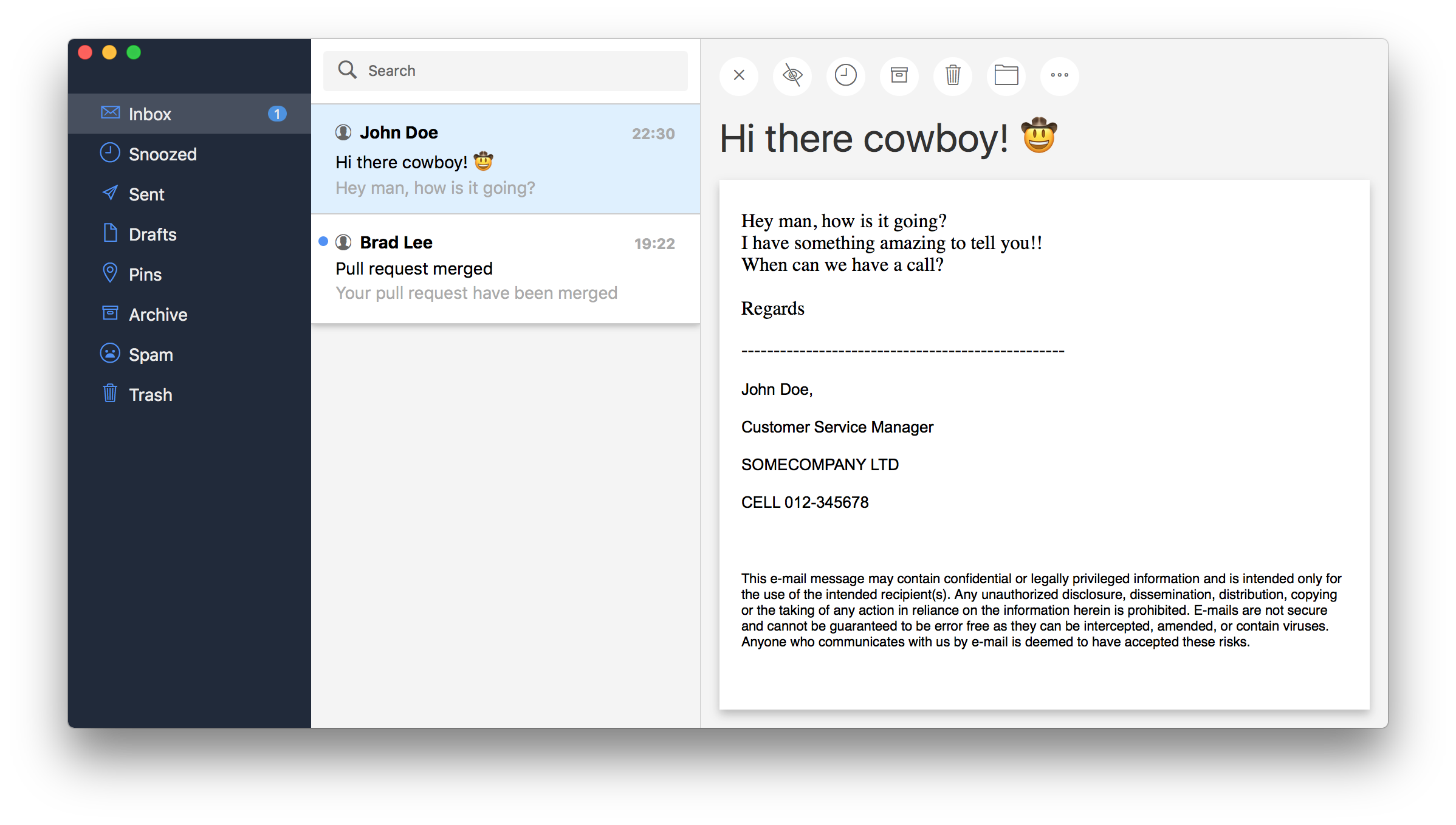 This application is completely dummy. Don't expect to replace your current mail client by this ๐