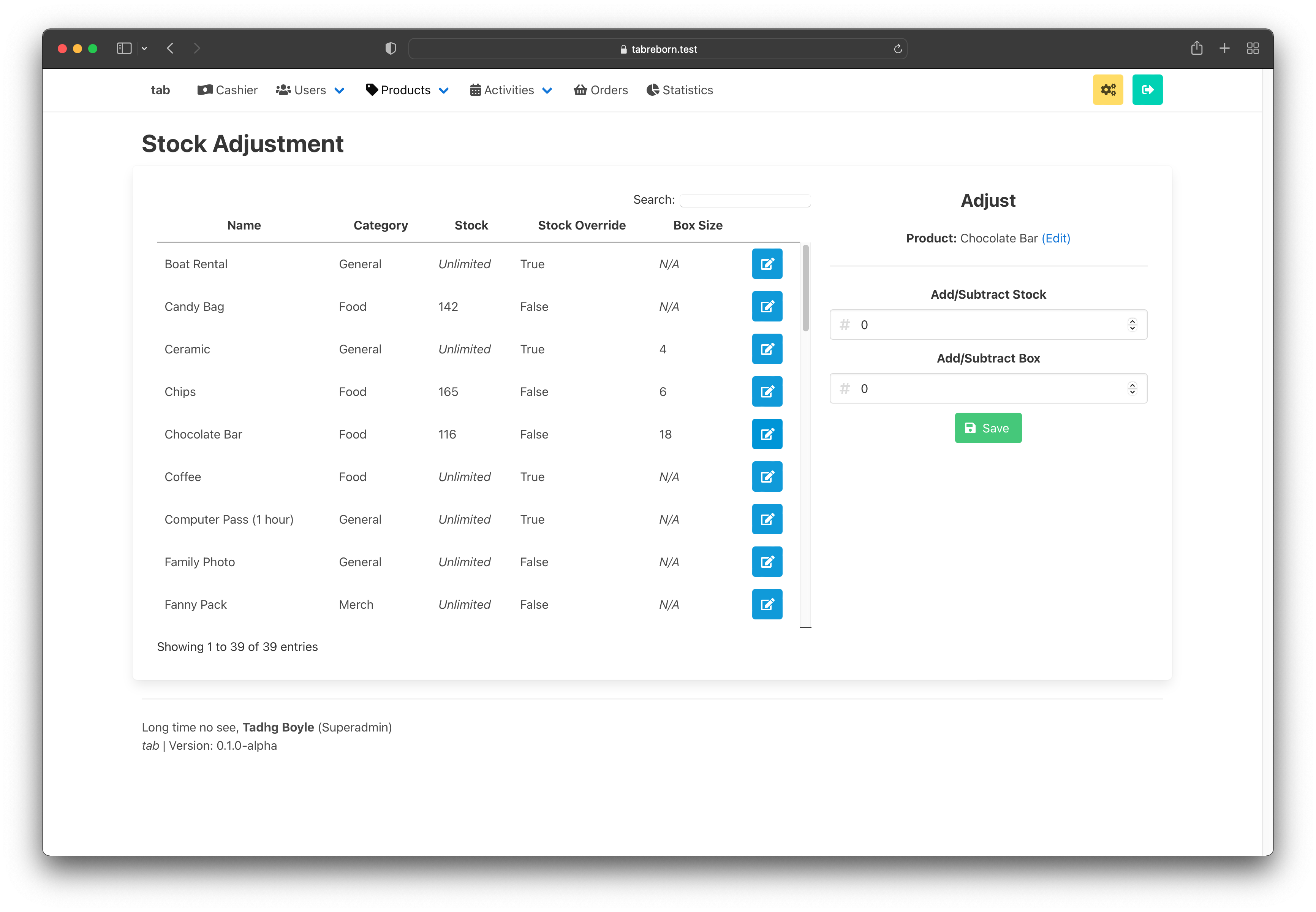 - "Set stock" in adjust page as well as add/subtract.