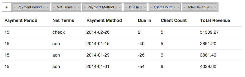 defaultColumns : an array of the column titles you want shown upon load.