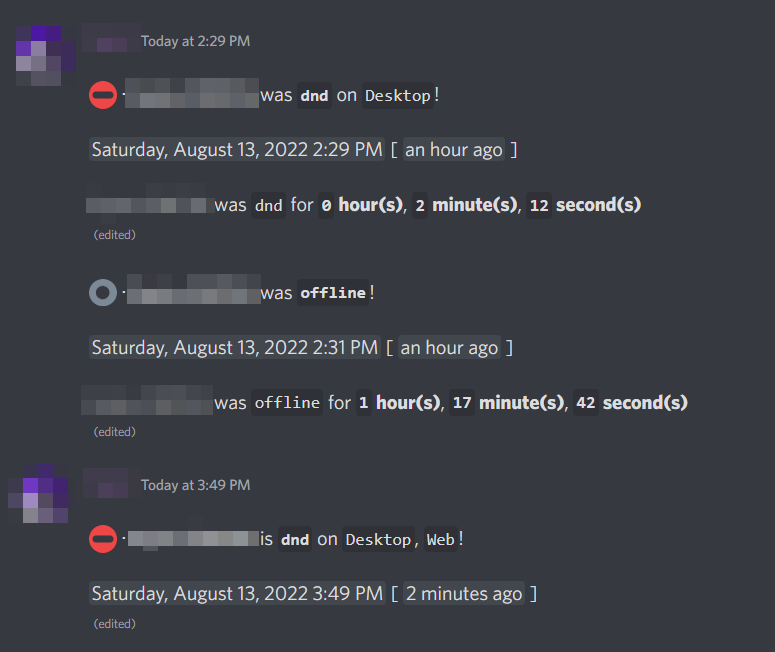 Do you think your e-girlfriend is cheating on you while you sleep? Well worry no more use this selfbot to log when she was online/dnd/idle/offline 😂